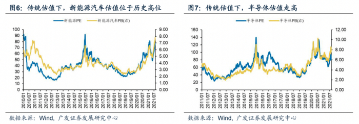 通常认为企业生命周期可粗分为四个阶段:发展、成长、成熟、衰退。成长股通常具有盈利高增长,收入高增长的特点,并且对应的业务市场规模亦未固定,伴随技术变革以及政策推动下的供需侧升级,市场仍有极大的增长空间,新兴产业未来规模较当期水平或将有数量级的提升,因此很难以当期经营状况准确预期未来。传统常用的估值指标PE、PB通常以当期的净利润或净资产为基准,新兴产业链中多数企业因其成长属性未被这些指标反映而往往容易呈现被高估的“假象”。