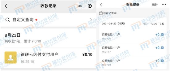 云闪付App付款记录:微信(左)支付宝(右)