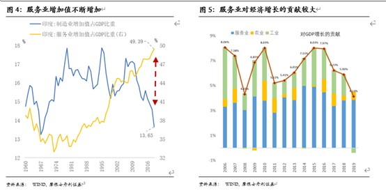 第三,印度国内工业与服务业发展不均衡,经济改革所带来的政策利好效应难以充分发挥