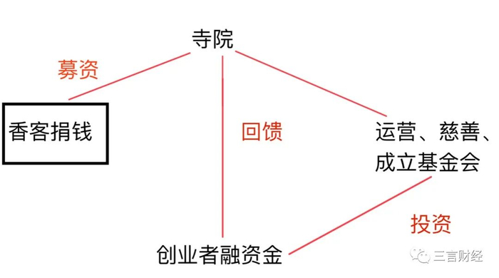 而寺庙创办基金会资助创业,亦可以理解为是一种投资行为。那么,寺庙即可视作为“VC”,而香客实际上就是“LP”,创业者则相当于是“修行者”。