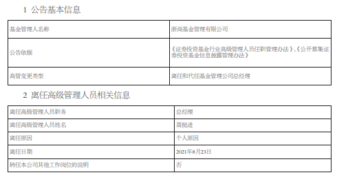 浙商基金公告总经理离任,大佬肖风走向前台?