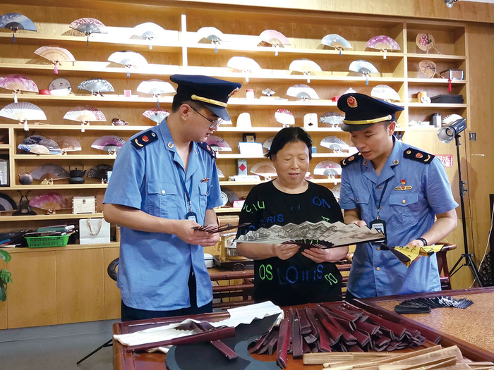 今年以来,安吉县市场监管部门从产品质量标准、知识产权保护等方面着手,不断强化竹扇“品字标”团体标准培育,提升竹扇制作工艺,统一产品质量标准,进一步展示竹扇非物质文化资源、擦亮竹扇品牌。潘柏林 张 峰 文/摄