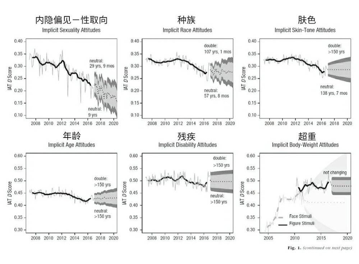 [22] Charlesworth, Tessa ES, and Mahzarin R. Banaji. "Patterns of implicit and explicit attitudes: I. Long-term change and stability from 2007 to 2016." Psychological science 30.2 (2019): 174-192.