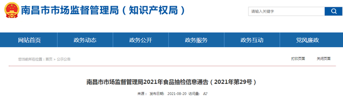 南昌市市场监督管理局抽检食品272批次 12批次不合格