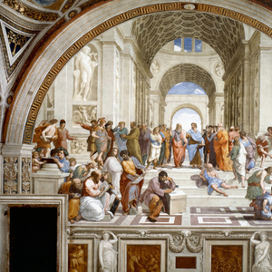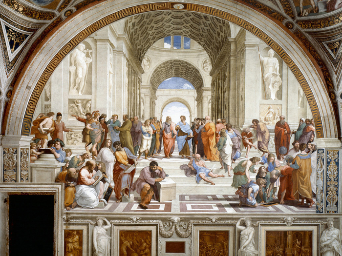 虽然《雅典学院》在后世频繁被提及,也被认为是表达“艺术永远在追求崇高的理性精神,永远在追求真善美统一的伟大审美理想”的典范,但是在其创作之初,不过是“人物和观念在象征与假装之间来回闪烁”。