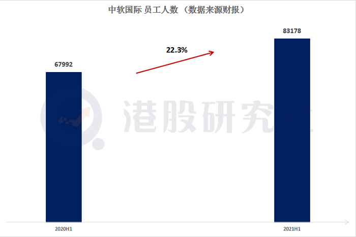 事实上,云智能业务也是对中软国际自身业务的延伸,布局智能云业务有一定的基础优势,报告期内,中软国际员工总数达到83178人,相比去年同期的67992人增长22.3%,这或许也能从侧面体现出中软国际的研发实力。