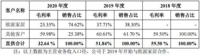 此外,慕思股份为了扩大与欧派家居的的合作规模,或不惜牺牲自身产品毛利率。招股书显示,专供欧派家居渠道的产品毛利率由2019年的37.71%下降至2020年的23.35%。并远低于其他直供客户的产品毛利率。
