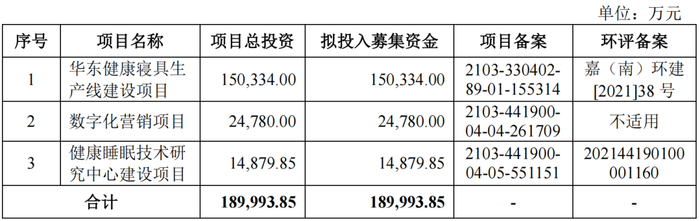 慕思股份计划募集资金18.89亿元。其中,15.03亿元将用于华东健康寝具生产线建设项目;其余将用于数字化营销项目及健康睡眠技术研究中心建设项目。
