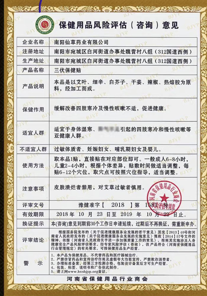 澎湃新闻注意到,和绿金家园的一些“三伏贴”产品一样,还有不少“三伏贴”打着保健品的旗号,使用的是河南省保健用品行业商会颁发的“豫健准字”、“豫健团标证字”这样的另类文号。