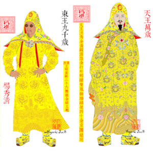 翼王28龙袍。(按:前期仅翼王,后期见《八年太平礼制》翼王喜千岁英王禄千岁,爵号并列同级。)