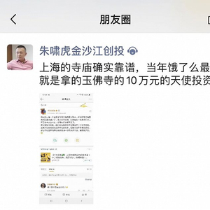 随后,朱啸虎在朋友圈转发此消息表示,“上海的寺庙确实靠谱,当年饿了么最早就是拿的玉佛寺的10万元的天使投资。”谁也不会想到,当年一个不经意的小小善举,竟然成就了一段创投佳话。