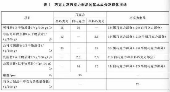 在我国目前实行的《食品安全国家标准 巧克力、代可可脂巧克力及其制品》中,巧克力被明确定义为,“以可可制品(可可脂、可可块或可可液块/巧克力浆、可可油饼、可可粉)和(或)白砂糖为主要原料,添加或不添加乳制品、食品添加剂,经特定工艺制成的在常温下保持固体或半固体状态的食品”。我国规定,巧克力以及巧克力制品中代可可脂含量不得超过5%,超过5%就不能叫做巧克力,只能叫代可可脂巧克力。