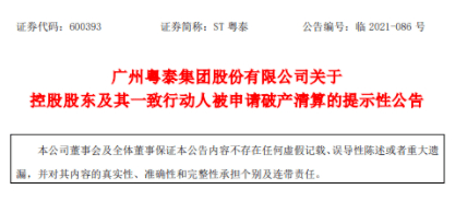 8月23日,广州粤泰集团股份有限公司一则被申请破产清算的提示性公告,引发关注。