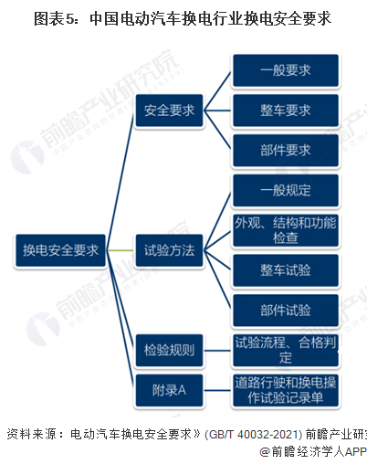 首先,行业首份换电模式的标准的出台规范换电业务的安全底线。根据《电动汽车换电安全要求》(GB/T 40032-2021),其中标准规定了可换电电动汽车所特有的安全要求、试验方法和检验规则,适用于可进行换电的M1类纯电动汽车。该标准的出台规定了潜在进入者的入门门槛,同时也保证换电业务的安全性,以及换电站的耐久性、可靠性,是电动汽车换电行业的安全技术标准。