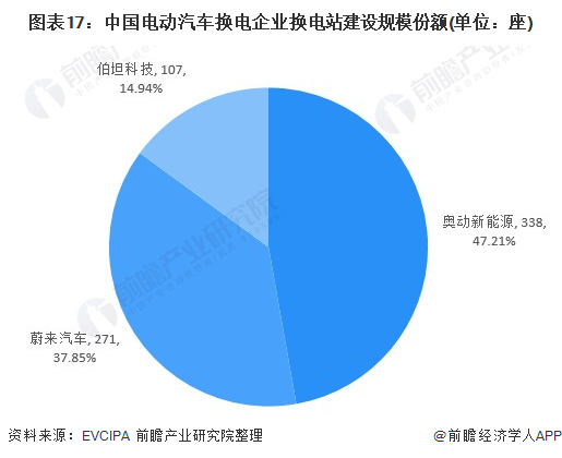 从电动汽车换电站建设规模来看,我国换电站主要被三家企业垄断,分别是奥动新能源、蔚来汽车和伯坦科技,截止2021年6月,其换电站建设规模分别以338座、271座和107座。市场份额以奥动新能源暂时领先。