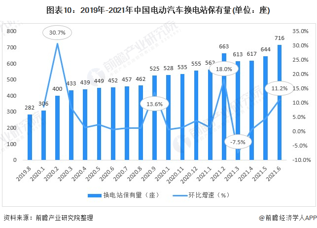 随着政策环境利好,越来越多的市场参与者开始布局和进入“换电”领域,“换电”模式逐渐发力。根据中国电动充电基础设施促进联盟的统计数据显示,2019年以来,全国电动汽车换电站建设规模不断提升,2020年末,数量达555座;截至2021年6月,全国共有716座换电站。