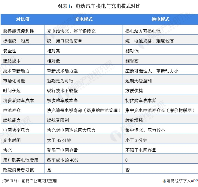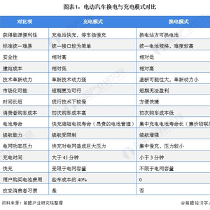 电动汽车换电模式是指通过集中型充电站对大量电池集中存储、集中充电、统一配送,并在电池配送站内对电动汽车进行电池更换服务或者集电池的充电、物流调配、以及换电服务于一体。此模式可以省去车主大笔的购买电池的费用,并且可以解决充电时间过长的问题,但是电池重量级大必须使用机械,而且这对车辆制造有限制,必须统一电池标准,并且需要政府大力扶持,对基础设施建设要求高。当前电动汽车换电相比充电模式具有诸多的优势,具体两种模式的对比如下。
