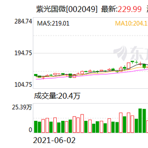 原标题:华泰证券维持紫光国微买入评级 目标价266.5元 来源:东方财富Choice数据