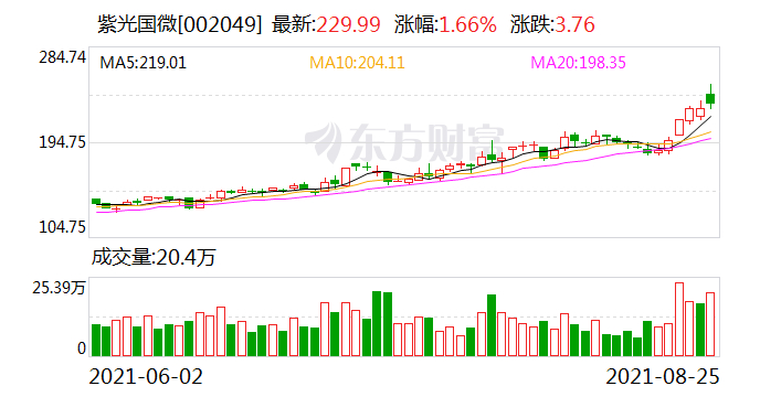 华泰证券8月25日发布研报,维持紫光国微买入评级,目标价位266.5元。截至报告日,公司最新收盘价为229.99元,较目标价有15.87%的上行空间。华泰证券预测,紫光国微2021年归母净利润19.71亿元,同比增长144.41%。