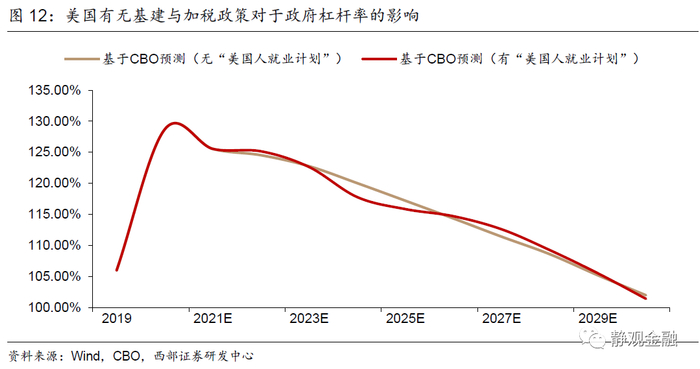 三、基建与加税的影响:短期利空美股;中期利多商品;长期利空长久期资产、利多短久期资产