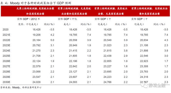 短期看,加税政策为基建落地后的美国经济降温、熨平未来3-4年经济增长,为2024年民主党赢得大选铺路。既然基建对于疫后美国经济来说有点像是“火上浇油”,那么就再用加税政策给短期经济降温。美国高企的M1同比增速表明群体免疫后美国极有可能迎来报复性资本开支,加税政策则有可能对此稍作反向调节。根据Moody的测算,“美国人就业计划”(3月31日白宫公布的“基建+加税”方案版本,其传统基建部分后续衍生成了《投资美国法案》(INVEST in America Act),加税部分还暂未立法,由于数据可得性原因,此处暂用原始合并版本代替)对美国实际 GDP 的拉动主要集中在2023-2025年,分别为0.40%、1.60%和1.10%。换言之,短期看与单独进行基建刺激相比,包含了加税政策的“美国人就业计划”能够熨平疫后经济,防止2022年过度过热及2023-2024年明显放缓,为2024年民主党再次赢得大选铺路。
