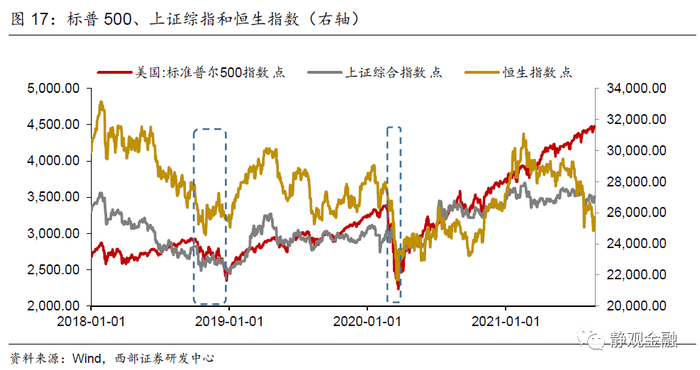 若美股急跌AH股或受波及;国内“两下一上”宏观面也可能会引发A股指数出现短期调整。A股及H股在美股调整之时也将受到情绪影响而走低,类似2018年Q4和2020年3月。此外,若《宏观视角下:A股因何抱团?风格何时切换?》提到的“两下一上”组合出现也可能会引发A股短期调整。
