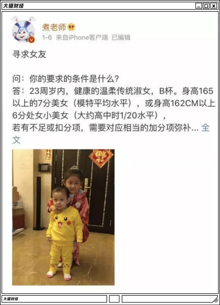 因为内容过于清奇,转发无数,文章还说他的小目标是生满50个孩子,并为此身体力行,招聘女友的帖子写的也很明确。