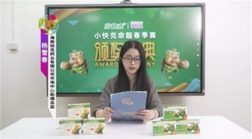 作为学院奖的老朋友,小快克以独特的0.5袋分隔包装以及儿童喜爱的草莓口味被百万大学生所熟知。在常规类别外,“快克创意实战奖”从不同角度、不同调性出发,去挖掘每一件作品,体现了快克药业对于大学生创意的喜爱与尊重。2021年,学院奖组委会联合快克药业发起“快克新青年社会化媒体创意传播大赛”,旨在帮助大学生群体了解新媒体传播的特性,号召参赛人群将创意真正在新媒体传播平台传播,从而检验创意的传播势能。海南快克药业有限公司市场中心助理总监杨雪春女士宣布小快克命题的常规类别荣誉,并揭晓“快克创意实战奖”及快克社会化媒体创意传播大赛的最终名单。