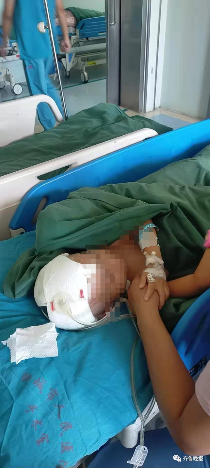 “孩子头皮被撕咬掉3块,眉头整个撕下一块,耳朵咬掉一部分,大腿被咬掉一块,脖子大腿腰部伤口都很深,后背也被咬伤。当时孩子满身是血,再晚一点孩子可能就活不了了……”