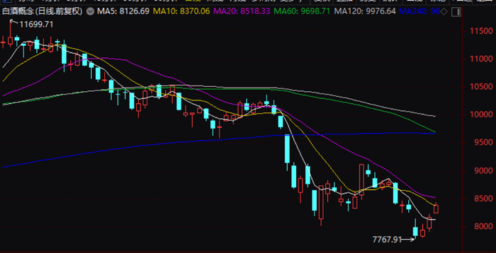 不过随后,市场情绪便逐渐趋于稳定,截至8月25日收盘,贵州茅台已经连续三个交易日上涨,股价重回1600元以上,25日涨幅2.45%。同样,白酒板块在最近3个交易日中,也出现上涨。