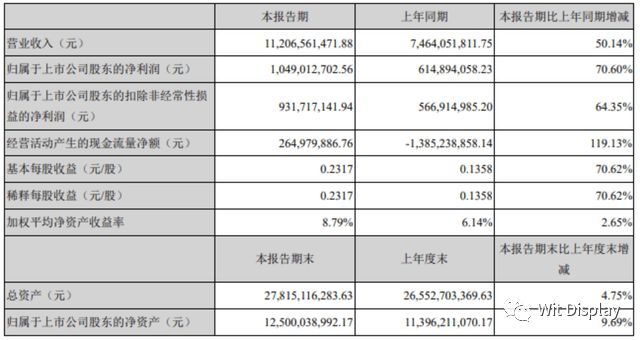 8月25日,兆驰股份发布半年报称,2021年上半年,公司实现营业收入为112.07亿元,同比增长50.14%;归属于上市公司股东的净利润为10.49亿元,同比增长70.60%。