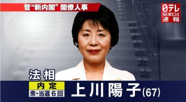 野村悟也是赶得“不巧”。日本现任法务大臣是上川阳子。她2020年9月出任菅义伟内阁的法务大臣,这也是她第三度担任法务大臣。