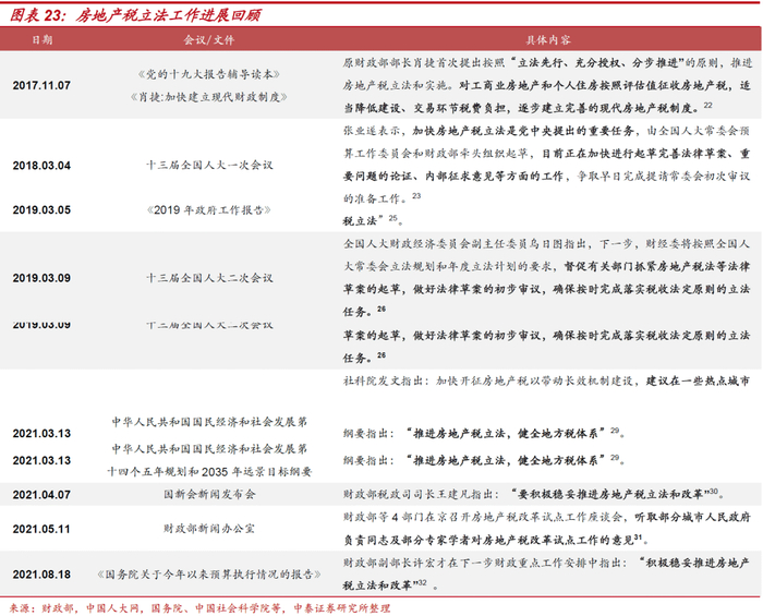 2020年以来,财政部等部门先后四次提及推进房地产税立法和改革,两次讲到房地产税试点开征和相关意见征求,房地产税立法与改革势在必行。不过,作为新开征的税种,房地产税立法过程需要权衡多方利益,全国层面立法难度较大,未来房地产税的实施或将出台相关试点方案,由全国人大授权部分地方政府试点先行,扩大试点城市和住房类型征收范围,其中热点城市和“炒房”屡禁不止的城市或将作为试点对象,率先加快开征。