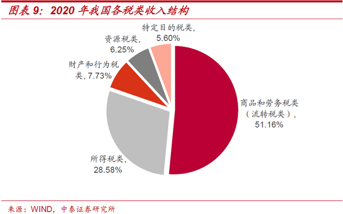 [4] 此处各税种的收入占比是指各税种收入/不考虑出口退税的税收收入,2020年税收收入为154310亿元,出口退税13629亿元是税收收入的减项,则不考虑出口退税的税收收入为167939亿元。