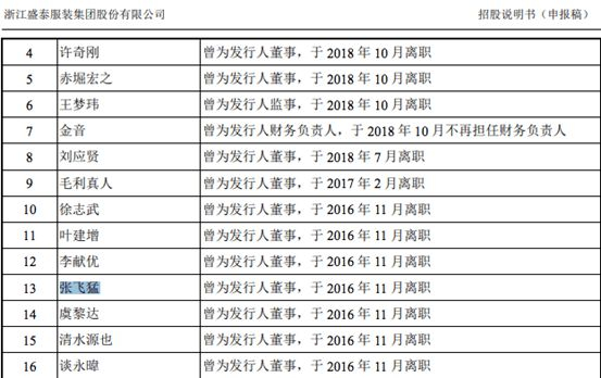 其中宁波雅戈尔日中纺织印染有限公司的董事长张飞猛,曾为盛泰集团董事,于 2016 年 11 月离职。