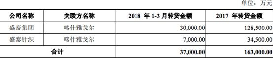 同时盛泰集团还存在与阿克苏雅戈尔的资金拆借,报告期内盛泰集团就向阿克苏雅戈尔合计拆出近2亿元的资金。