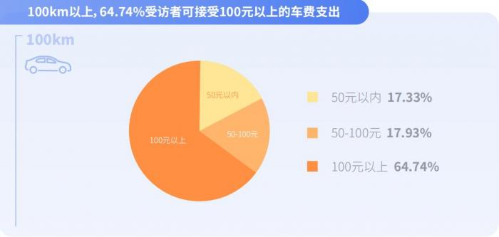 与此同时,大学生对成本控制存在明显诉求。调研结果显示,当距离为50-100km时,有48.41%的被访大学生接受50到100元的车费支出,而愿意承受100元以上车费的被访大学生仅占25.3%。这表明,随着市内出行距离增加,大学生的价格敏感度开始提升。