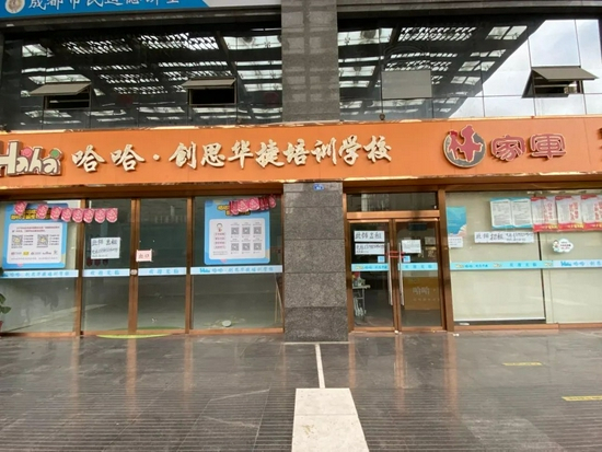在成都市通惠门处的哈哈·创思华捷校外培训机构,记者惊奇地发现,在此处开了5、6年的这一培训机构突然关门。而此前,该机构培训火爆,因为在距离此机构不远处,就有两所成都市较为知名的小学。