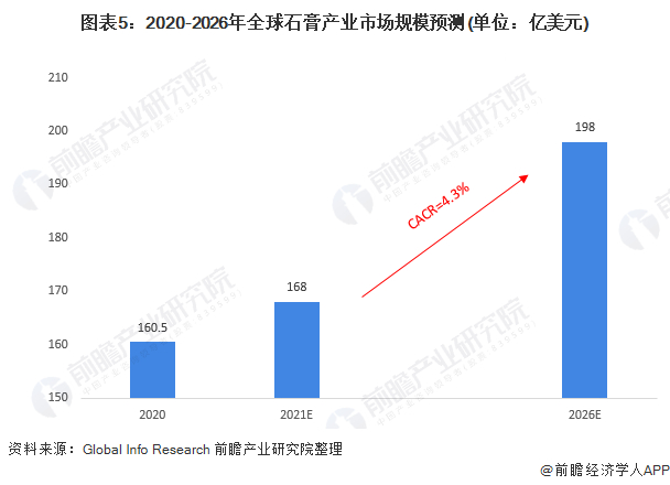 原标题:2021年全球石膏产业市场现状及发展前景分析 未来石膏规模仍将保持增长【组图】 来源:前瞻产业研究院