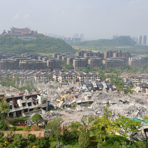 2021年7月26日,昆明市晋宁区长腰山滇池二级保护区以内的湖景林苑整改现场 人民视觉图