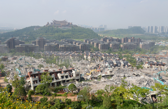 滇池龙门别墅群已进入拆除阶段。
