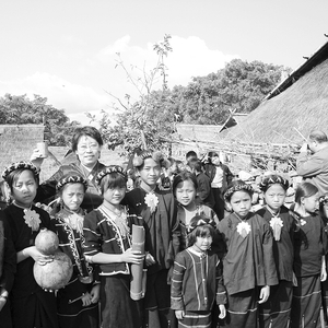 华茶基金会向少数民族青少年推广茶文化,邵曙光(左四)与当地佤族小朋友留影。