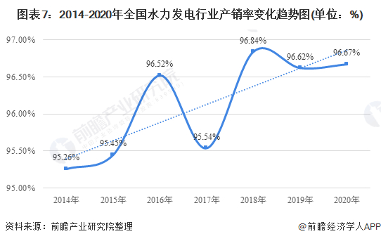 由于我国暂时无水力发电相关的产销率,因此前瞻根据我国水电发电量和测算的水电用电量进行测算水力发电的产销率。由于电无法被大量储存,同时电的储存成本较高,因此我国的电力行业产销比较高,接近100%。