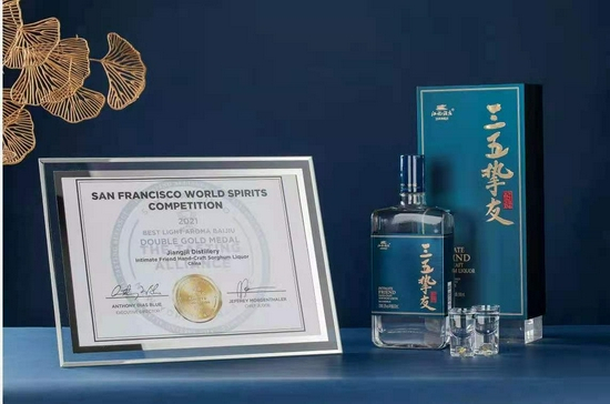▲三五挚友在美国旧金山世界烈酒大赛上被评为“最佳清香型白酒”