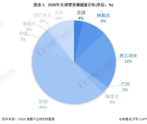 锂作为有色金属大家族的一员,近年来一直是行业关注的热点。全球锂资源较为丰富,根据美国地质调查局数据显示,2020年全球锂资源储量约为2100万吨锂金属当量。从地区分布情况,智利和澳大利亚锂资源最为丰富,锂资源储量分别为920万吨和470万吨锂金属当量,合计占到全球的66%。