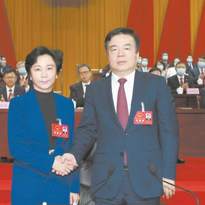 图:保定市委书记党晓龙(右)祝贺闫继红(左)当选市长 来源:保定日报