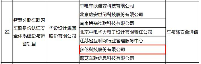 近日,工信部公示了车联网身份认证和安全信任试点项目名单,多伦科技与各合作企业联合申报的车与路安全通信方向项目――“智慧公路车联网车路身份认证安全体系建设与运营项目”成功入围。