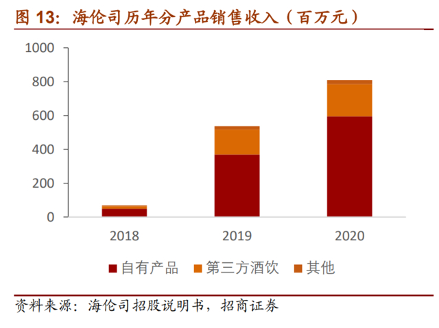 同时,海伦司的自有品牌的接受度很高,过去3年中,自有品牌的销售额持续提升,2020年公司自有产品收入为5.95亿元,占总收入比例达73.53%。