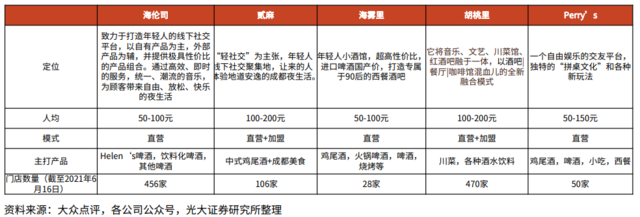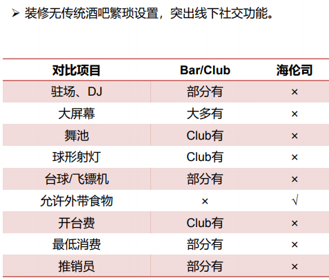 轻量化也是海伦司实现快速扩张的重要原因。对比市面上大部分的Bar或者Club,海伦司几乎不具备任何一样他们所拥有的重资产项目,没有驻场、没有DJ、没有调酒师,只有预先做好的酒饮成品。总之,不提供任何会增加重资产数量或人工成本的服务。