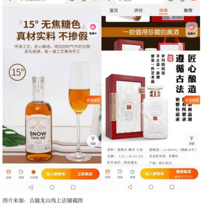 近日,财经网产经在淘宝古越龙山店铺发现,其推出的一款定价120元的“悠雪”黄酒,在营销时将“无焦糖色、真材实料不掺假”作为卖点,而其配料表确实只有鉴湖水、糯米、小麦。